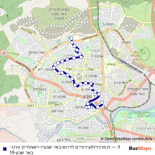 Bus 3 - ת.מרכזית/עירוניים לדרום-באר שבע<->אצטדיון טרנר-באר שבע-10: Full Schedule in Beersheba