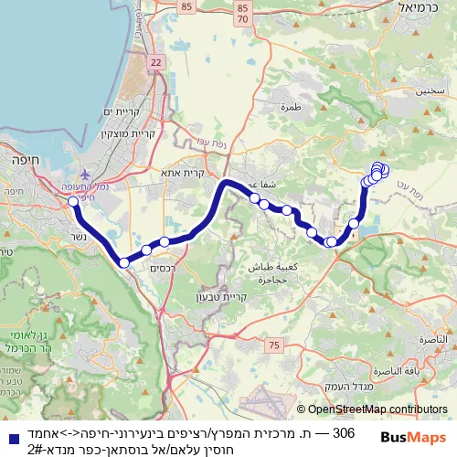 Click here to view the nearest 306 - ת. מרכזית המפרץ/רציפים בינעירוני-חיפה<->אחמד חוסין עלאם/אל בוסתאן-כפר מנדא-2# bus stop.
