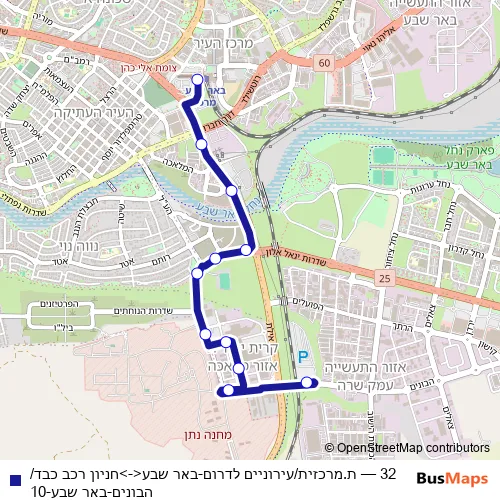 Bus 32 - ת.מרכזית/עירוניים לדרום-באר שבע<->חניון רכב כבד/הבונים-באר שבע-10: Full Schedule in Beersheba