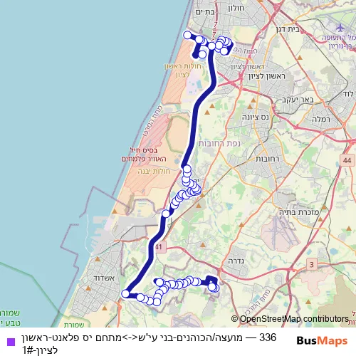 Click here to view the nearest 336 - מועצה/הכוהנים-בני עי'ש<->מתחם יס פלאנט-ראשון לציון-1# bus stop.