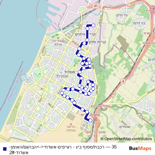 Bus 35 - רכבת/מסוף ביג - רציפים-אשדוד<->הבושם/האומן-אשדוד-2# in Ashdod: Stops & Timetable