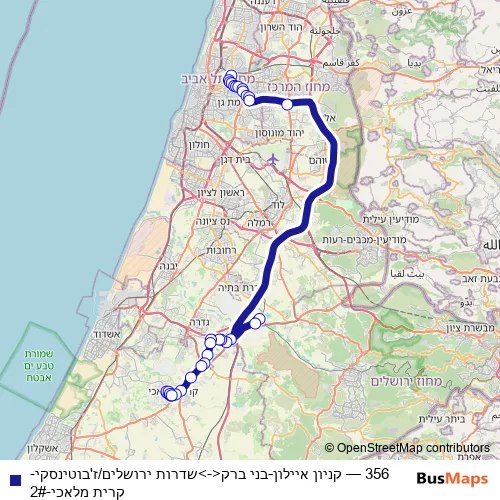 Click here to view the nearest 356 - קניון איילון-בני ברק<->שדרות ירושלים/ז'בוטינסקי-קרית מלאכי-2# bus stop.