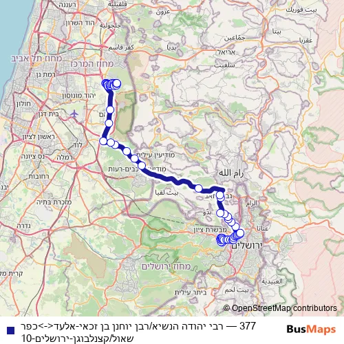 Bus 377 - רבי יהודה הנשיא/רבן יוחנן בן זכאי-אלעד<->כפר שאול/קצנלבוגן-ירושלים-10 in Jerusalem: Stops & Timetable