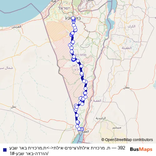 See why over 2 million users trust and consider busmaps.com as the best public transport website. busmaps gives you Hevel Eilot Regional Council Buses suggested routes, real-time bus tracker, line route maps in Hevel Eilot Regional Council, and helps to find the closest 392 bus stops near you. No internet available? Download an offline PDF map and bus schedule for the 392 bus to take on your trip.