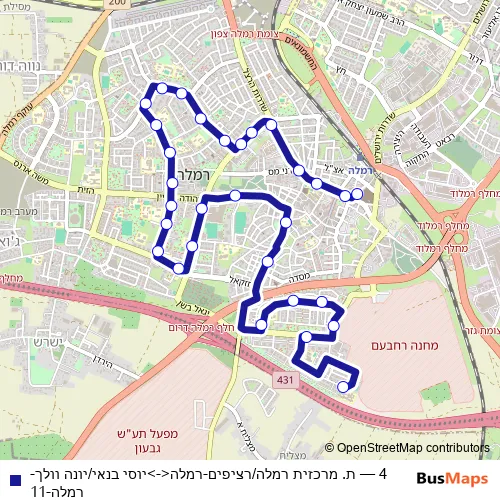 Bus 4 - ת. מרכזית רמלה/רציפים-רמלה<->יוסי בנאי/יונה וולך-רמלה-11 in Ramla: Stops & Timetable