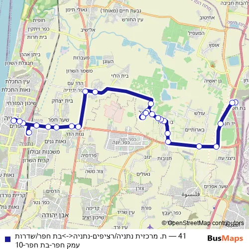 Click here to view the nearest 41 - ת. מרכזית נתניה/רציפים-נתניה<->בת חפר/שדרות עמק חפר-בת חפר-10 bus stop.