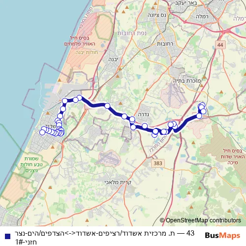 Bus 43 - ת. מרכזית אשדוד/רציפים-אשדוד<->הצדפים/הים-נצר חזני-1# in Ashdod: Stops & Timetable