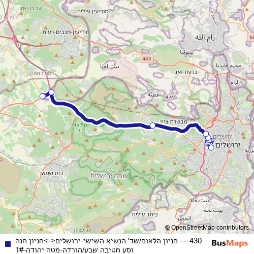 See why over 2 million users trust and consider busmaps.com as the best public transport website. busmaps gives you Jerusalem Buses suggested routes, real-time bus tracker, line route maps in Jerusalem, and helps to find the closest 430 bus stops near you. No internet available? Download an offline PDF map and bus schedule for the 430 bus to take on your trip.