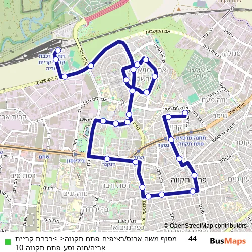 Bus 44 - מסוף משה ארנס/רציפים-פתח תקווה<->רכבת קריית אריה/חנה וסע-פתח תקווה-10 in Tel Aviv: Stops & Timetable