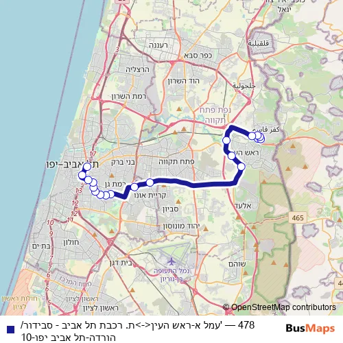 Click here to view the nearest 478 - 'עמל א-ראש העין<->ת. רכבת תל אביב - סבידור/הורדה-תל אביב יפו-10 bus stop.