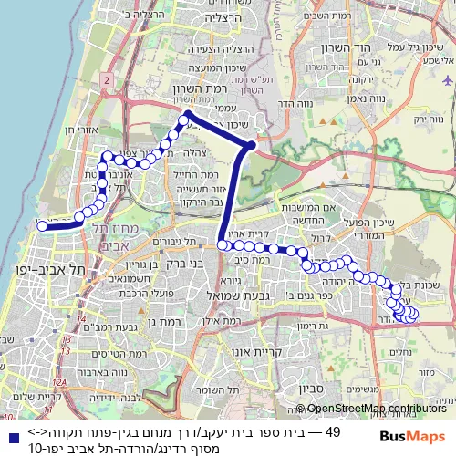 Bus 49 - בית ספר בית יעקב/דרך מנחם בגין-פתח תקווה<->מסוף רדינג/הורדה-תל אביב יפו-10 Schedule in Tel Aviv