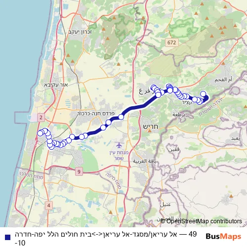 Bus 49 - אל עריאן/מסגד-אל עריאן<->בית חולים הלל יפה-חדרה-10: Full Schedule in 'Ar'ara