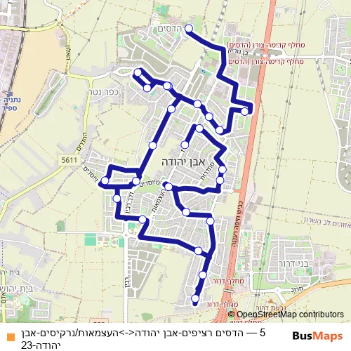 Bus 5 - הדסים רציפים-אבן יהודה<->העצמאות/נרקיסים-אבן יהודה-23 in Even Yehuda: Stops & Timetable