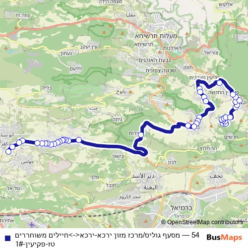 Bus 54 - מסעף גוליס/מרכז מזון ירכא-ירכא<->חיילים משוחררים טז-פקיעין-1# Schedule in Buqei'a
