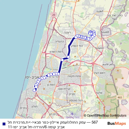 Click here to view the nearest 567 - עמק החולה/עמק איילון-כפר סבא<->ת.מרכזית תל אביב קומה 6/הורדה-תל אביב יפו-11 bus stop.