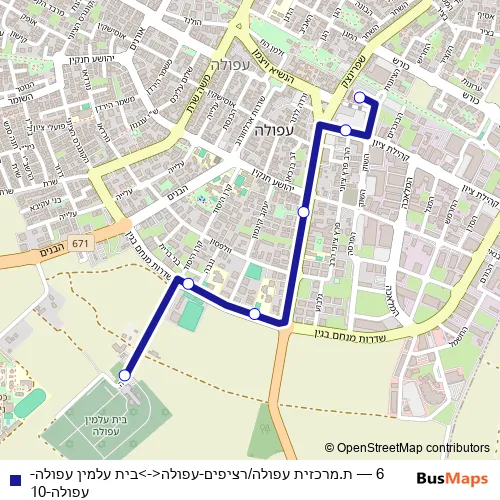 The first stop of the 6 bus route is Afula Central Station/Platforms and the last stop is Afula Cemetery. 6 (ת.מרכזית עפולה/רציפים-עפולה<->בית עלמין עפולה-עפולה-10) is operational during everyday.
