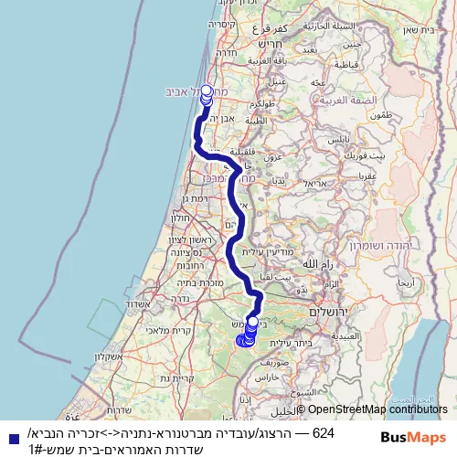 Bus 624 - הרצוג/עובדיה מברטנורא-נתניה<->זכריה הנביא/שדרות האמוראים-בית שמש-1#: Full Schedule in Jerusalem