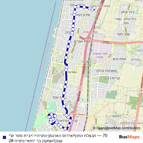 See why over 2 million users trust and consider busmaps.com as the best public transport website. busmaps gives you Netanya Buses suggested routes, real-time bus tracker, line route maps in Netanya, and helps to find the closest 70 bus stops near you. No internet available? Download an offline PDF map and bus schedule for the 70 bus to take on your trip.