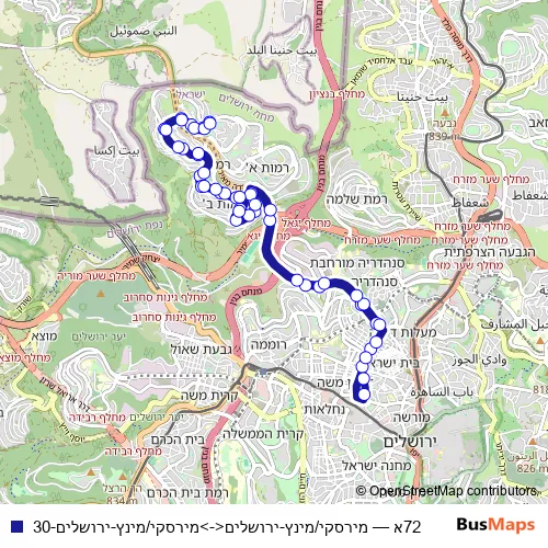 See why over 2 million users trust and consider busmaps.com as the best public transport website. busmaps gives you Jerusalem Buses suggested routes, real-time bus tracker, line route maps in Jerusalem, and helps to find the closest 72א bus stops near you. No internet available? Download an offline PDF map and bus schedule for the 72א bus to take on your trip.