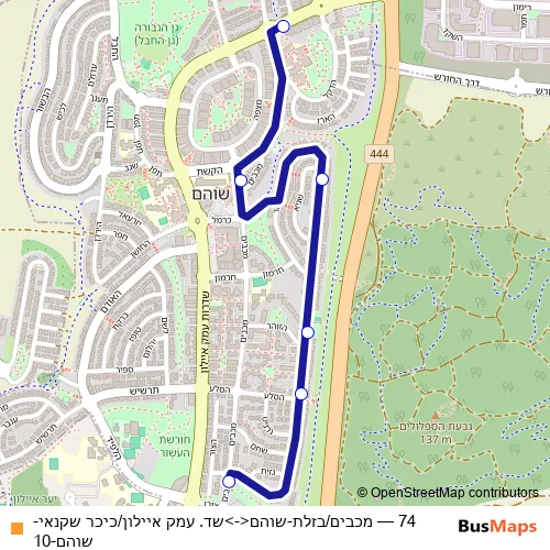 Bus 74 - מכבים/בזלת-שוהם<->שד. עמק איילון/כיכר שקנאי-שוהם-10 Schedule in Shoham
