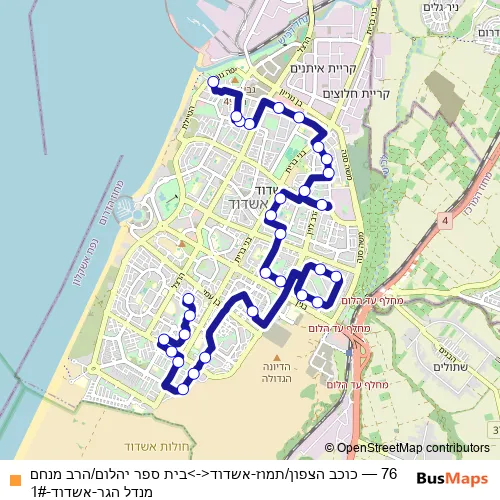 76 (כוכב הצפון/תמוז-אשדוד<->בית ספר יהלום/הרב מנחם מנדל הגר-אשדוד-1#) Bus in Ashdod