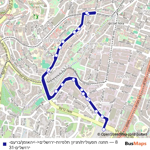 Click here to view the nearest 8 - תחנה תפעולית/חניון תלפיות-ירושלים<->האומן/ברעם-ירושלים-31 bus stop.