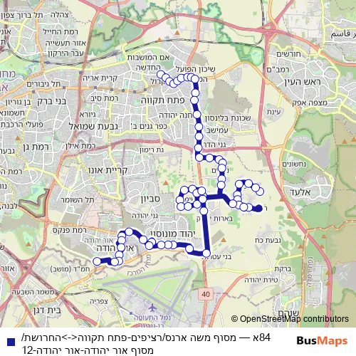 See why over 2 million users trust and consider busmaps.com as the best public transport website. busmaps gives you Tel Aviv Buses suggested routes, real-time bus tracker, line route maps in Tel Aviv, and helps to find the closest 84א bus stops near you. No internet available? Download an offline PDF map and bus schedule for the 84א bus to take on your trip.
