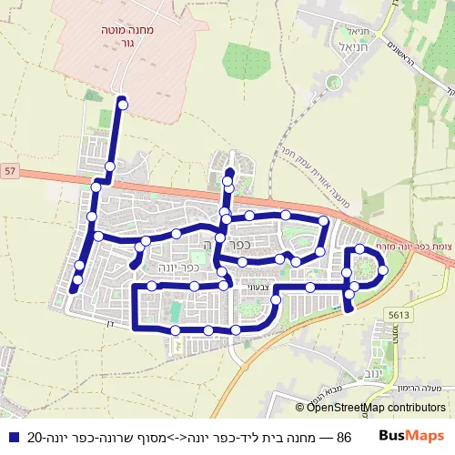 Bus 86 - מחנה בית ליד-כפר יונה<->מסוף שרונה-כפר יונה-20: Full Schedule in KfarYona