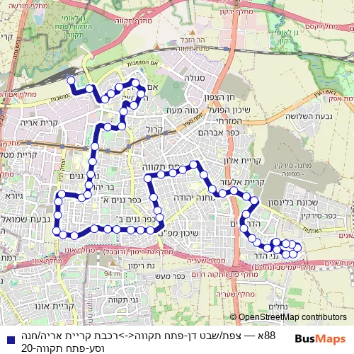 Bus 88א - צפת/שבט דן-פתח תקווה<->רכבת קריית אריה/חנה וסע-פתח תקווה-20 Schedule in Tel Aviv
