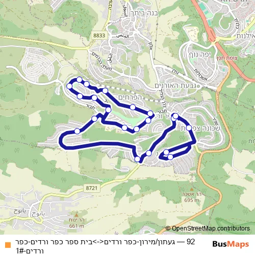 See why over 2 million users trust and consider busmaps.com as the best public transport website. busmaps gives you KfarVeradim Buses suggested routes, real-time bus tracker, line route maps in KfarVeradim, and helps to find the closest 92 bus stops near you. No internet available? Download an offline PDF map and bus schedule for the 92 bus to take on your trip.