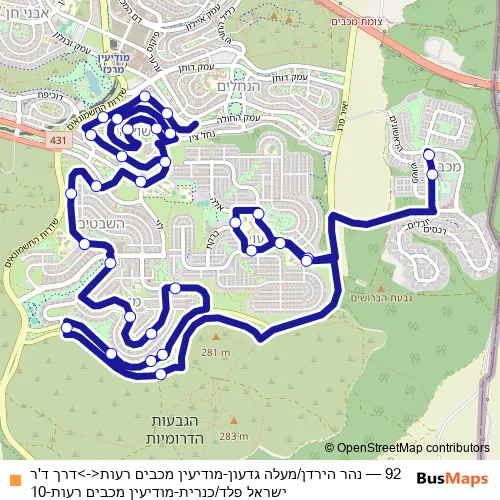 Click here to view the nearest 92 - נהר הירדן/מעלה גדעון-מודיעין מכבים רעות<->דרך ד'ר ישראל פלד/כנרית-מודיעין מכבים רעות-10 bus stop.