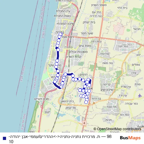 Click here to view the nearest 98 - ת. מרכזית נתניה-נתניה<->ההדרים/עממי-אבן יהודה-10 bus stop.
