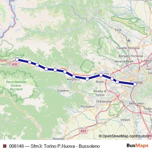 Click here to view the nearest 008148 - Sfm3: Torino P.Nuova - Bussoleno rail stop.
