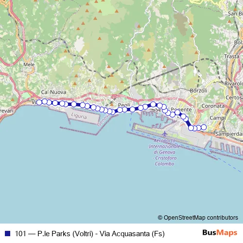Click here to view the nearest 101 - P.le Parks (Voltri) - Via Acquasanta (Fs) bus stop.