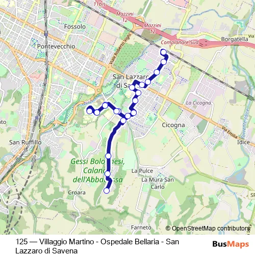 Bus 125 - Villaggio Martino - Ospedale Bellaria - San Lazzaro di Savena: Full Schedule in San Lazzaro