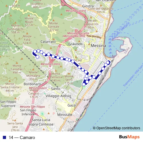 See why over 2 million users trust and consider busmaps.com as the best public transport website. busmaps gives you Messina Buses suggested routes, real-time bus tracker, line route maps in Messina, and helps to find the closest 14 bus stops near you. No internet available? Download an offline PDF map and bus schedule for the 14 bus to take on your trip.