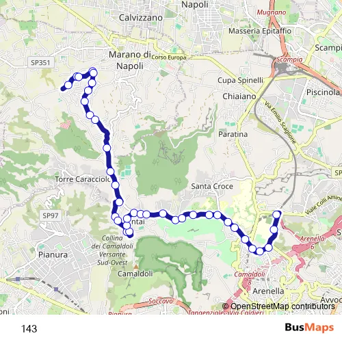 The first stop of the 143 bus route is Marano Quarto and the last stop is Ospedale Cardarelli. 143 is operational during everyday.