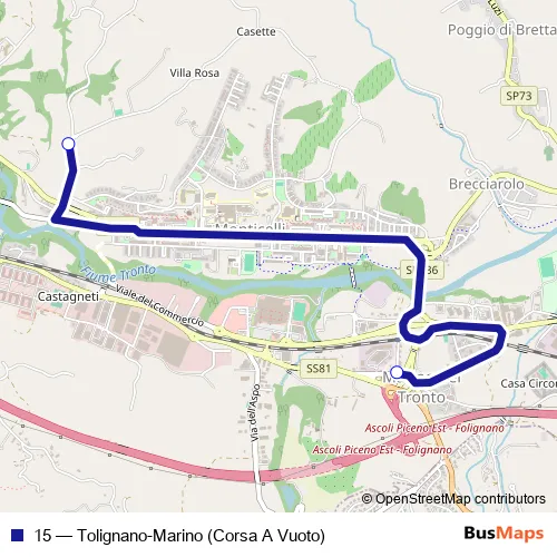 Bus 15 - Tolignano-Marino (Corsa A Vuoto) in Ascoli Piceno: Stops & Timetable