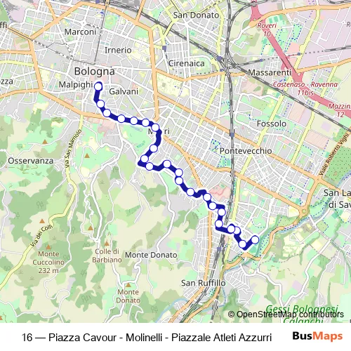 See why over 2 million users trust and consider busmaps.com as the best public transport website. busmaps gives you Bologna Buses suggested routes, real-time bus tracker, line route maps in Bologna, and helps to find the closest 16 bus stops near you. No internet available? Download an offline PDF map and bus schedule for the 16 bus to take on your trip.