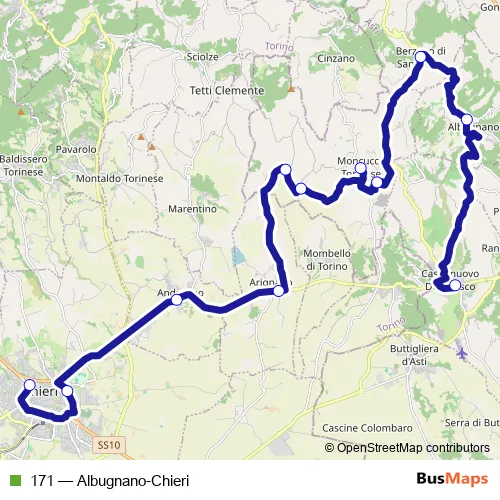 Click here to view the nearest 171 - Albugnano-Chieri bus stop.