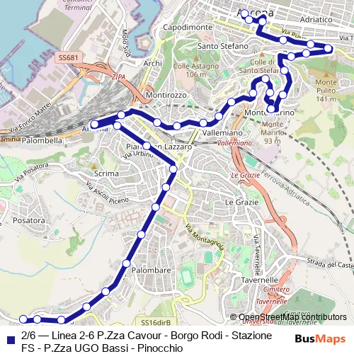 2/6 (Linea 2-6 P.Zza Cavour - Borgo Rodi - Stazione FS - P.Zza UGO Bassi - Pinocchio) Bus in Ancona
