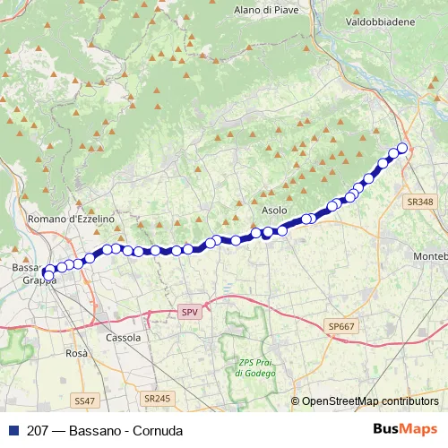 See why over 2 million users trust and consider busmaps.com as the best public transport website. busmaps gives you San Zenone degli Ezzelini Buses suggested routes, real-time bus tracker, line route maps in San Zenone degli Ezzelini, and helps to find the closest 207 bus stops near you. No internet available? Download an offline PDF map and bus schedule for the 207 bus to take on your trip.