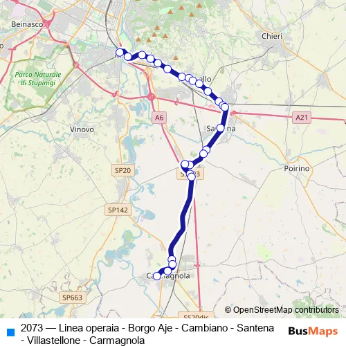 Bus 2073 - Linea operaia - Borgo Aje - Cambiano - Santena - Villastellone - Carmagnola: Full Schedule in Villastellone