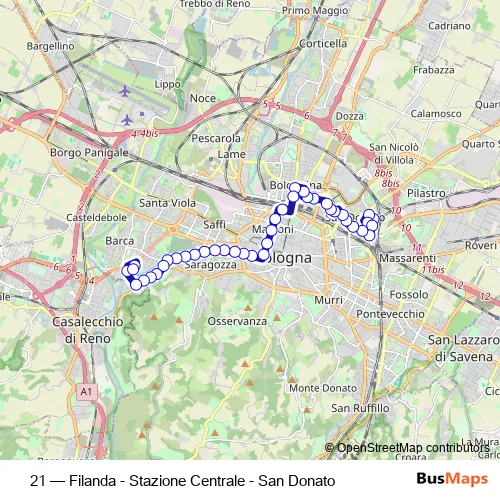 Bus 21 - Filanda - Stazione Centrale - San Donato Schedule in Bologna