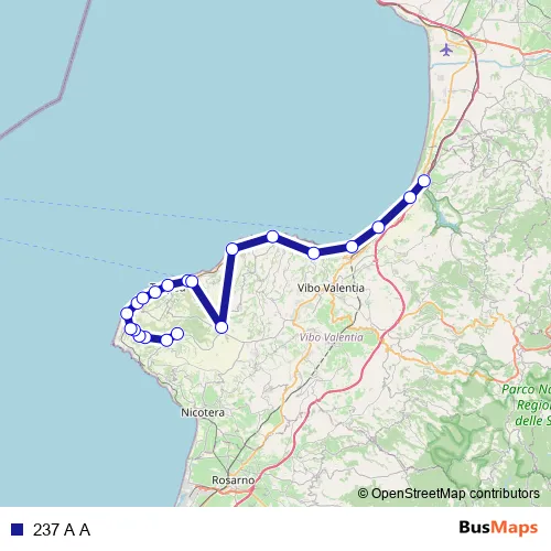 The first stop of the 237 A A bus route is Via 11 Settembre - Spilinga and the last stop is Bivio Stazione FS Francavilla Angitola - Francavilla Angitola. 237 A A is operational during everyday.