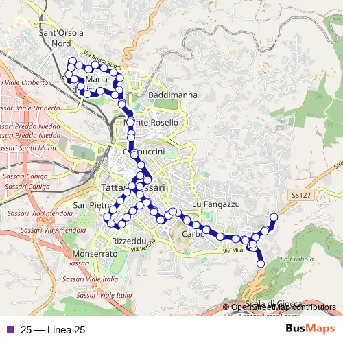 See why over 2 million users trust and consider busmaps.com as the best public transport website. busmaps gives you Sassari Buses suggested routes, real-time bus tracker, line route maps in Sassari, and helps to find the closest 25 bus stops near you. No internet available? Download an offline PDF map and bus schedule for the 25 bus to take on your trip.