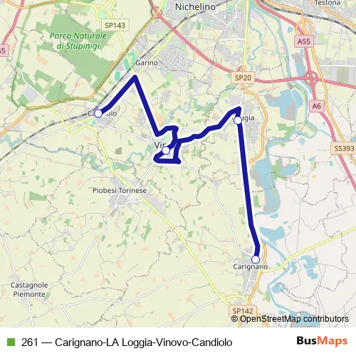 Bus 261 - Carignano-LA Loggia-Vinovo-Candiolo Schedule in Vinovo