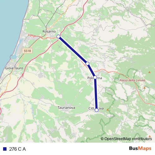 The first stop of the 276 C A bus route is Autostrada A2 Mediterranea - Rosarno and the last stop is Via Dante Alighieri, 5 - Cittanova. 276 C A is operational during everyday.