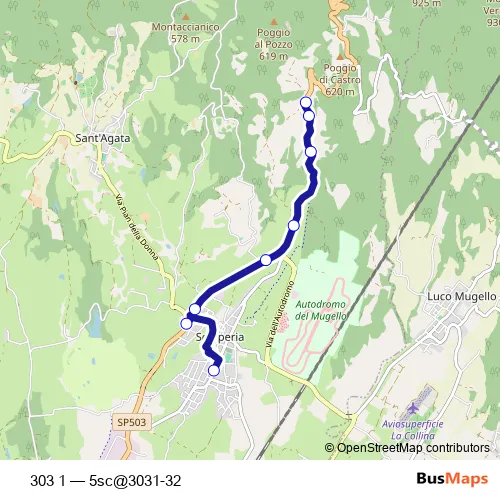 See why over 2 million users trust and consider busmaps.com as the best public transport website. busmaps gives you Scarperia Buses suggested routes, real-time bus tracker, line route maps in Scarperia, and helps to find the closest 303 1 bus stops near you. No internet available? Download an offline PDF map and bus schedule for the 303 1 bus to take on your trip.