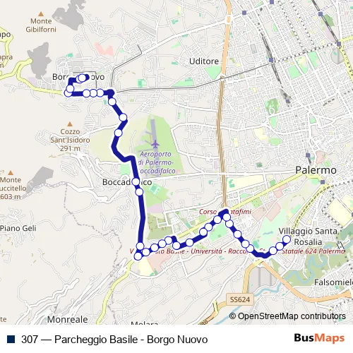 Bus 307 - Parcheggio Basile - Borgo Nuovo: Full Schedule in Palermo